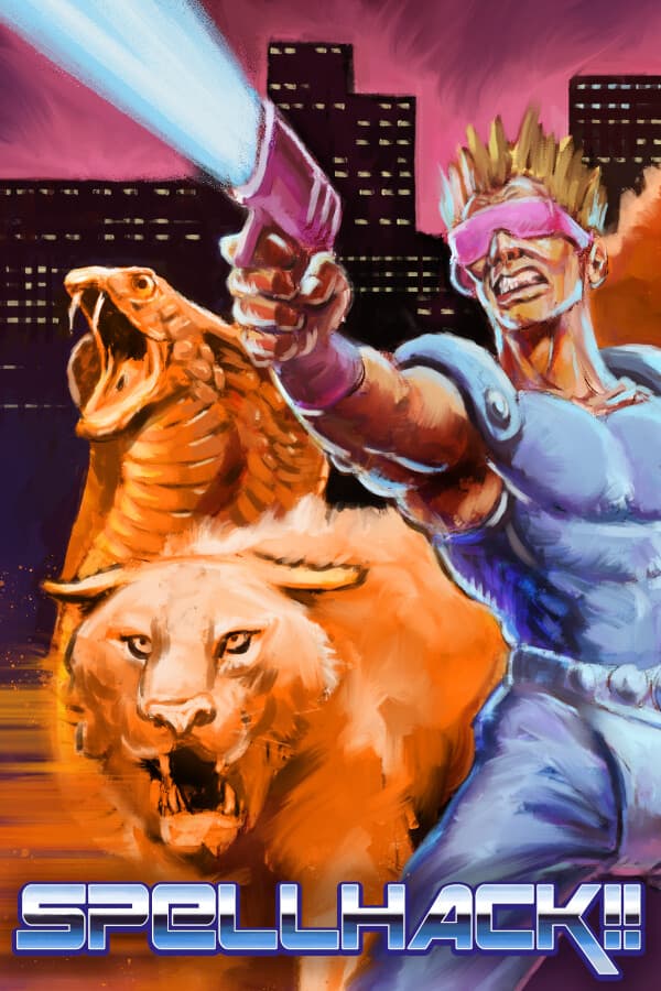 SPELLHACK!! is a real-time survival deckbuilder! Explore Doom City to collect and upgrade Technospells during the day, then defend against waves of Summoned Beasts at night in this totally rad roguelike!!
